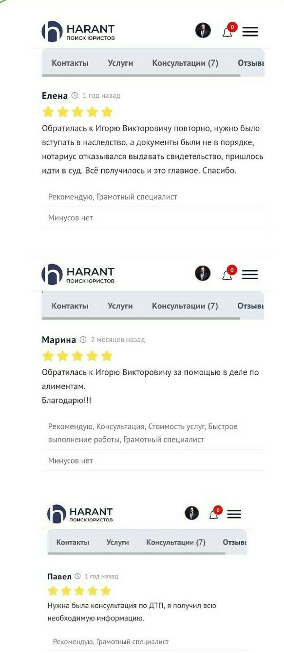 Тщательно отслеживаю изменения законодательства и постоянно совершенствую свою деятельность, расширяя спектр услуг согласно актуальным требованиям рынка. При этом основа моей работы – обеспечение всестороннего подхода к обслуживанию, находя эффективные способы решения поставленных доверителями задач!