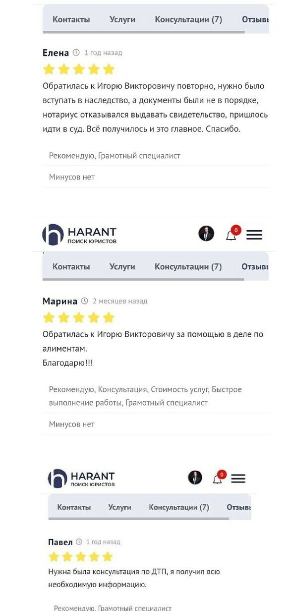 Тщательно отслеживаю изменения законодательства и постоянно совершенствую свою деятельность, расширяя спектр услуг согласно актуальным требованиям рынка. При этом основа моей работы – обеспечение всестороннего подхода к обслуживанию, находя эффективные способы решения поставленных доверителями задач!